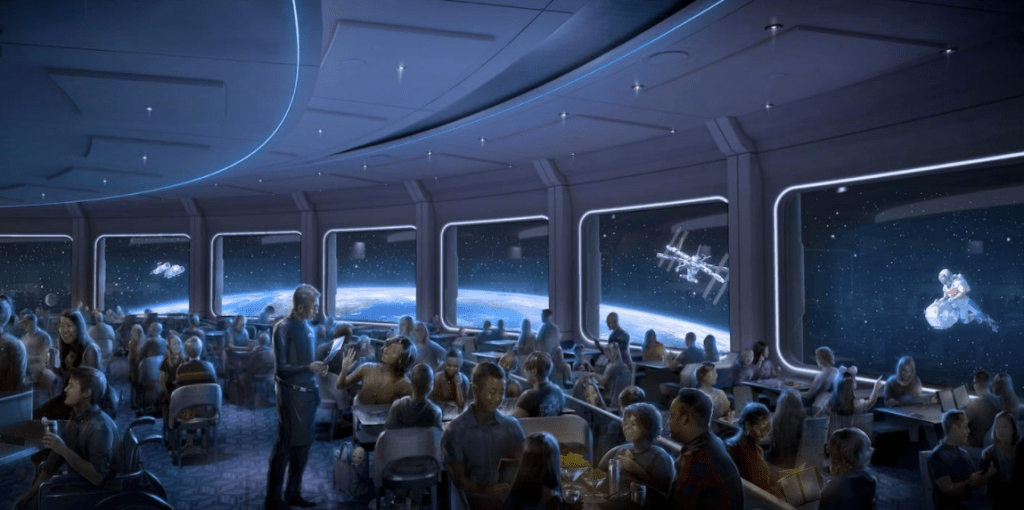 The Space 220 restaurant is designed to give you the closest experience to dining among the stars without actually leaving the Earth. It is appropriately located right next to the Mission: SPACE in the Future World section of EPCOT. This new restaurant will give you a riveting experience that starts the moment you check in to the Space 220 Departure Lounge. Next, you’ll be boarding one of the two “Space Elevators” which will take you up what is meant to simulate 220 miles (hence the name) above Earth to the Centauri Space Station. According to Zach Riddley’s description from his video released on instagram, once you’ve docked, you’ll head through the Space Station-themed dining area. Inside the dining area, you’ll get a panoramic view of Earth below, and a variety of work and leisure activities taking place beyond the windows out in space.
