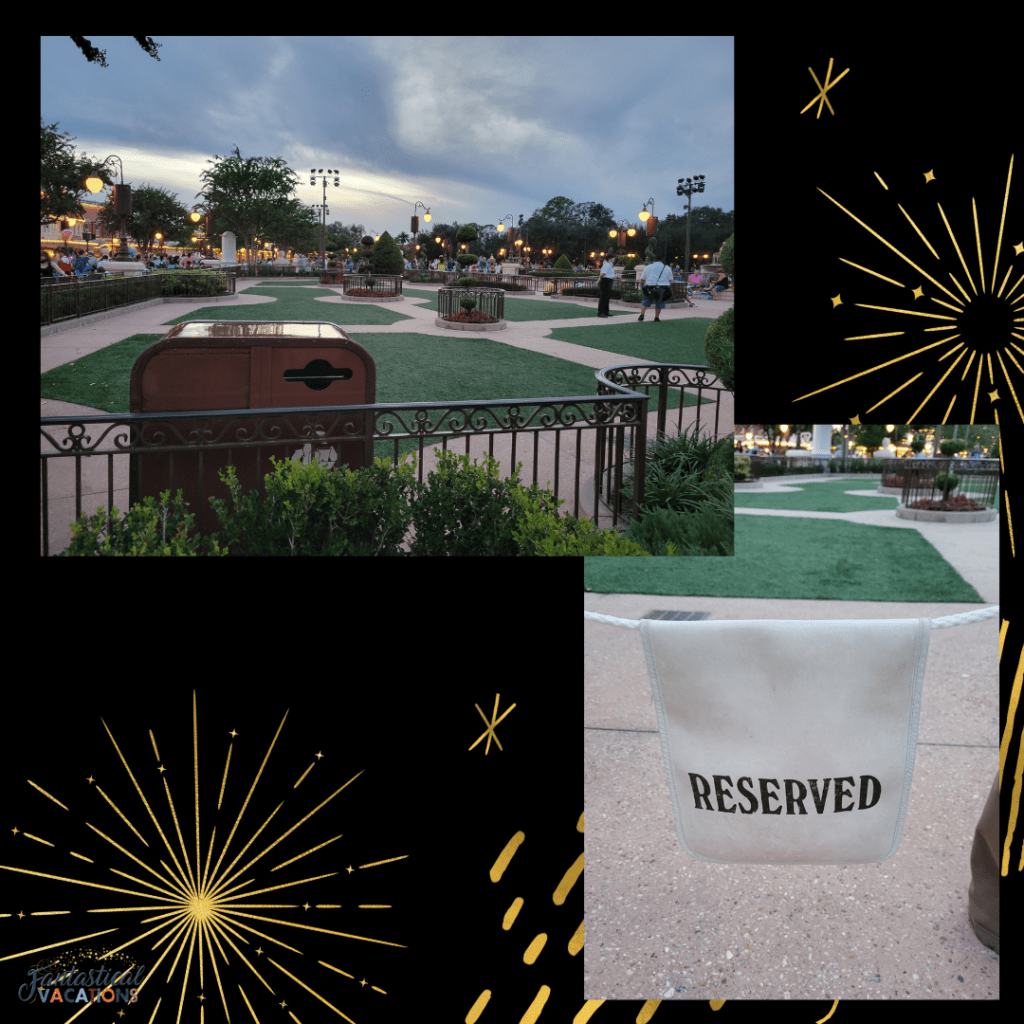 After you are done with your treats, you can make your way to the reserved area for the fireworks show. It is an area of hub grass close to the Terrace. You have to show your armband to get in. You can sit down and relax there, there was PLENTY of space and it was not crowded in the least bit. We did stand during the show itself, just because it was easier to see that way.