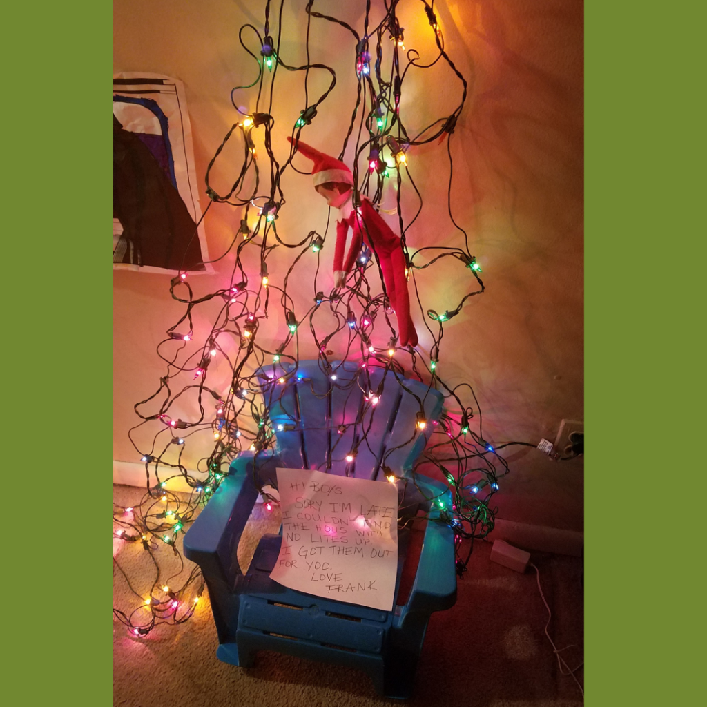 When he came back each year, he would bring a note and a marker that warned them he was back and ready for shenanigans! Our boys named their elf Frank. Frank was often up to no good, and found himself in trouble a lot.
