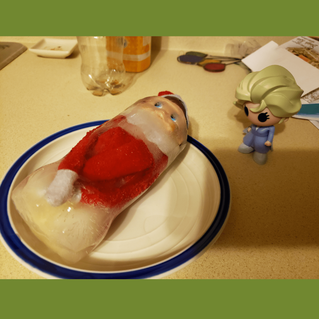 And then…..turned to a block of ice by Elsa. Don’t worry, he’s survived and still lives, dethawed and all dried out, ready to cause mischeif in another house!