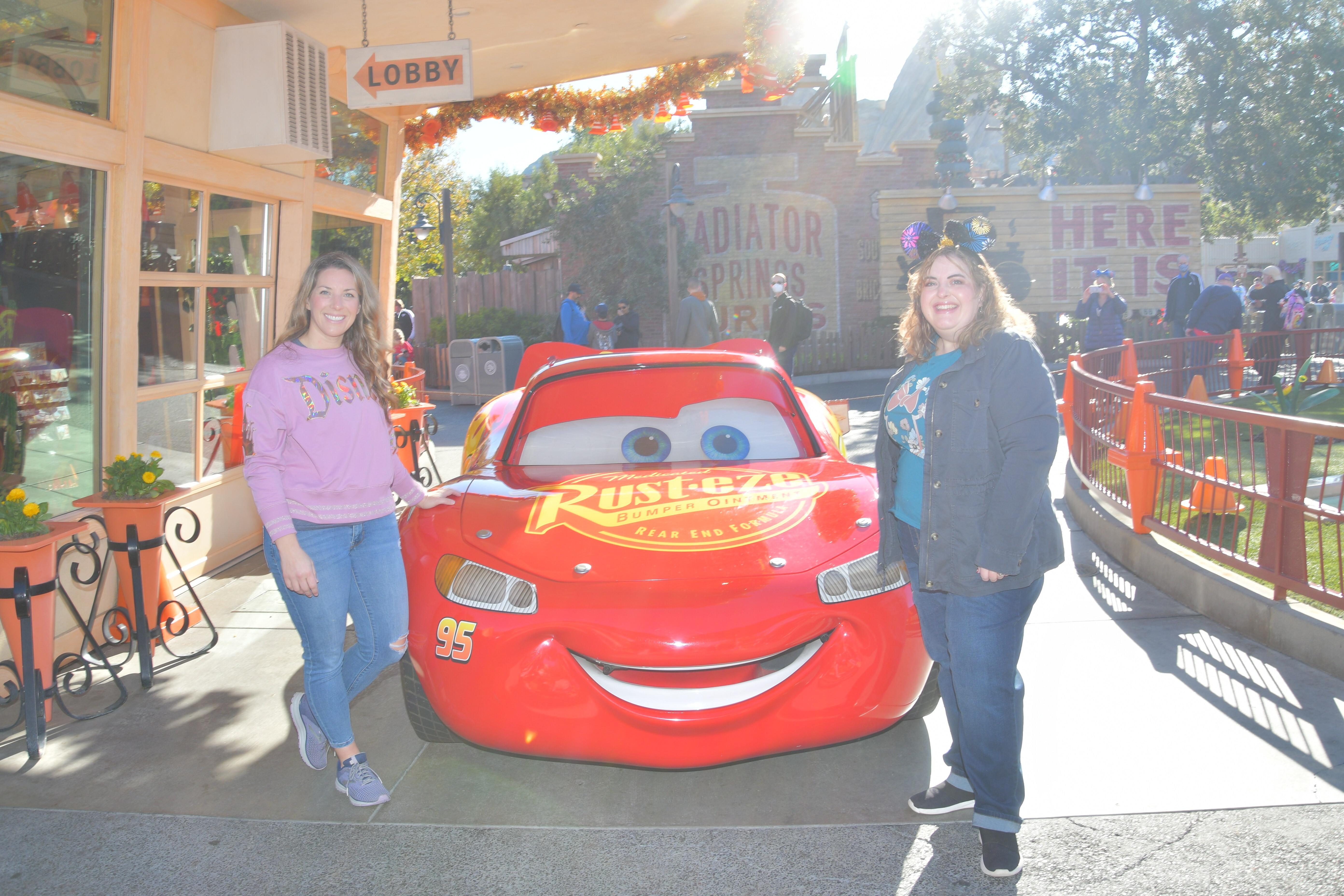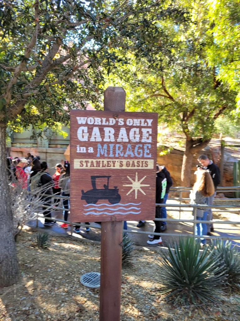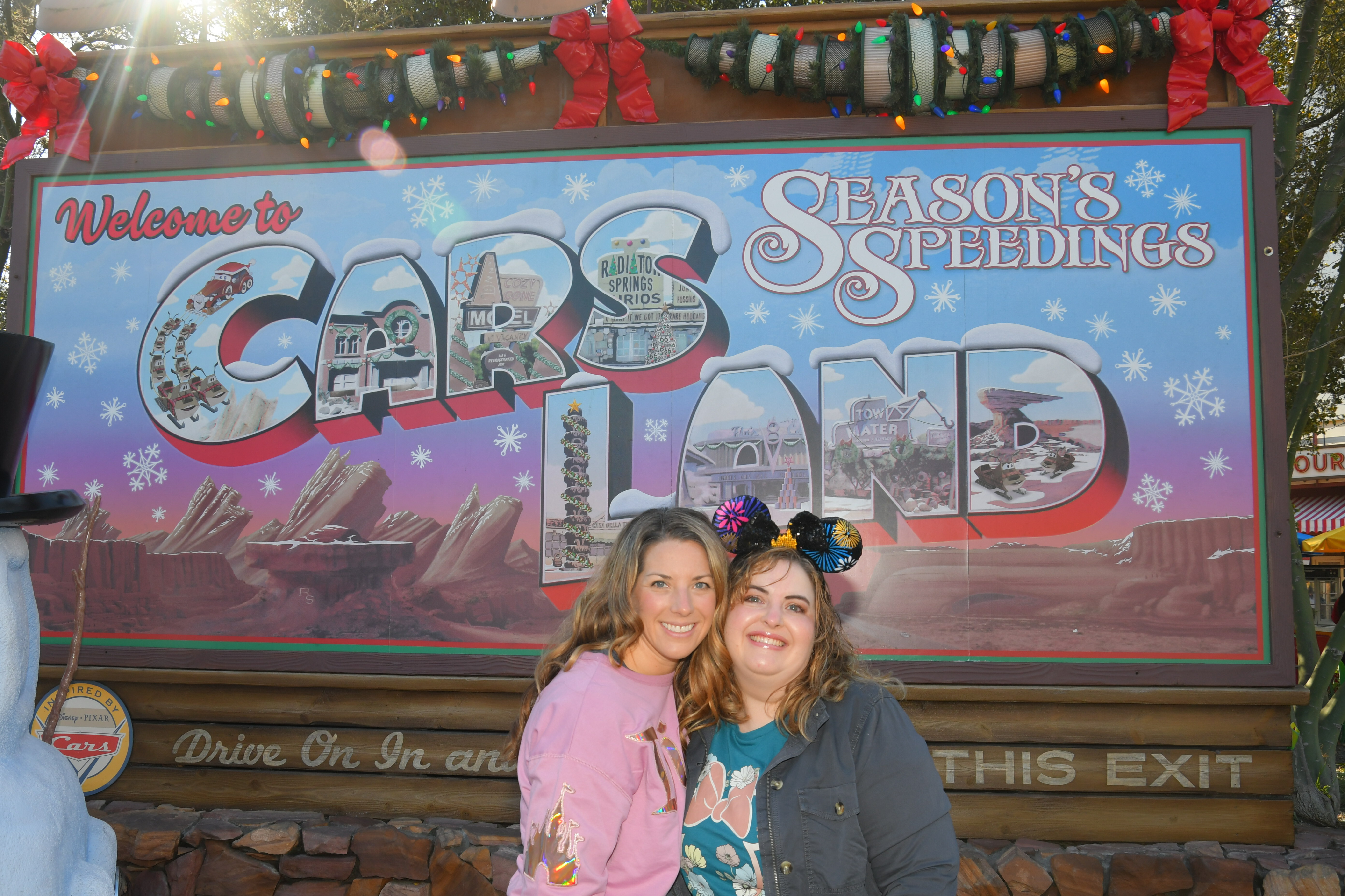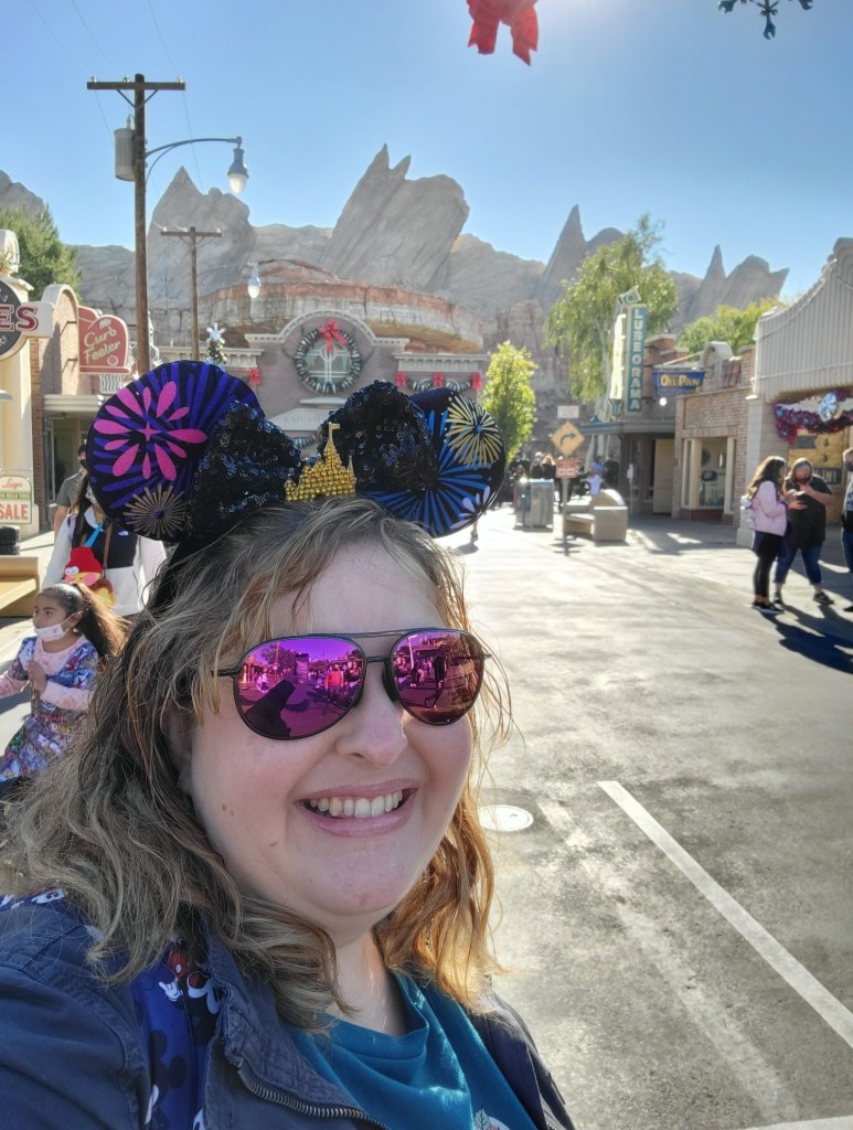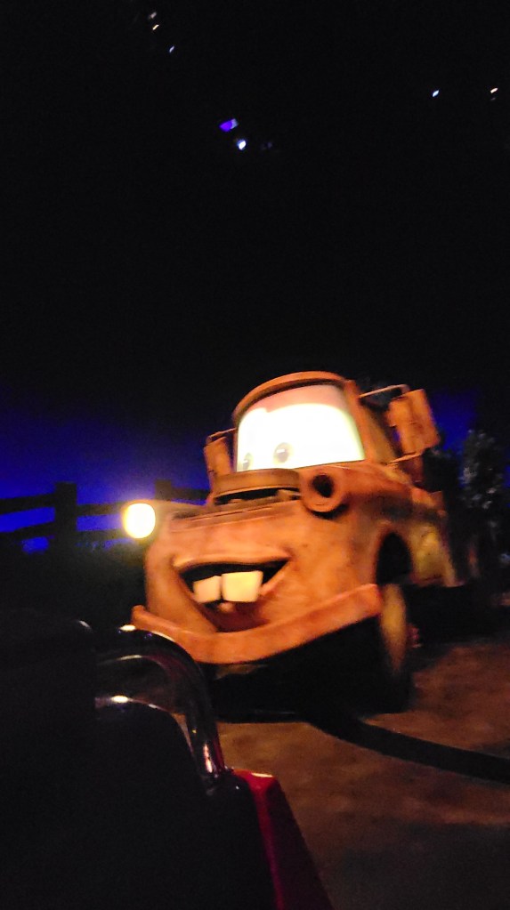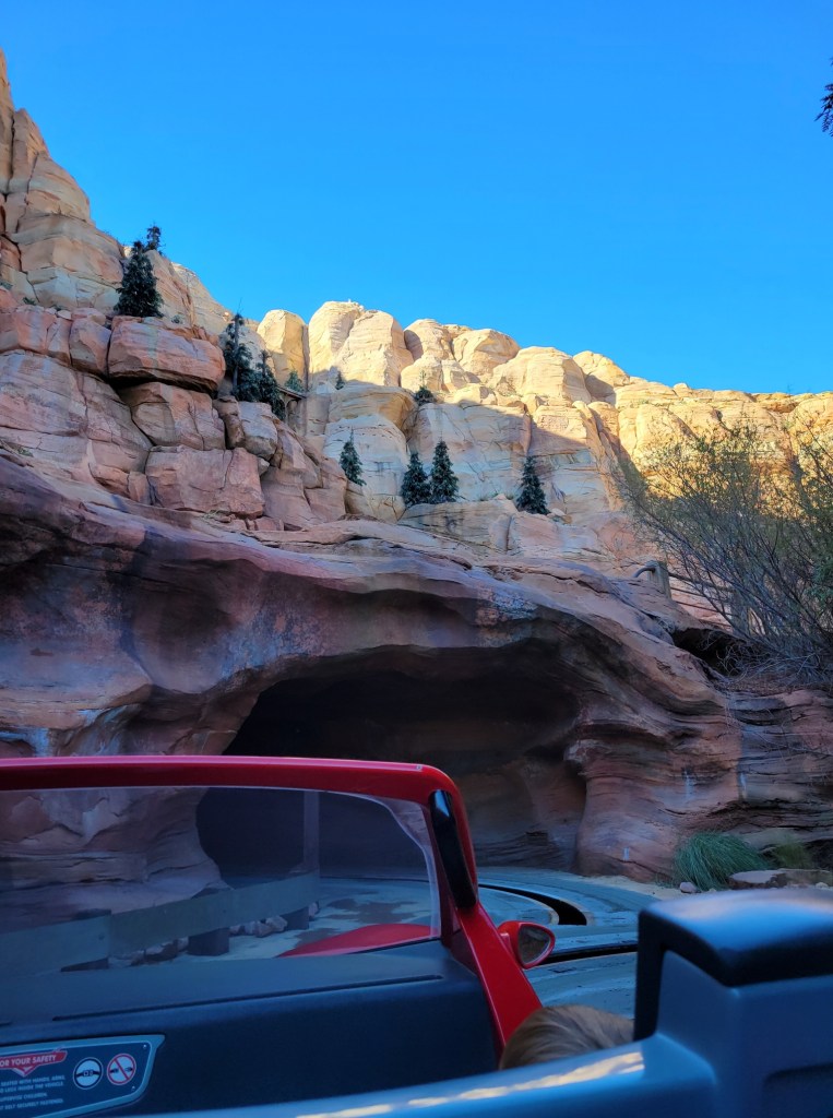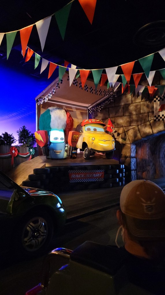 We had time before our Radiator Springs Racers Lightning Lane, so we had a quick ride on Mater’s Jingle Jamboree. It is like a more fun version of a scrambler ride. Lots of laughs ensued. Then we were off to the Racers. If you have ever ridden on Test Track at Walt Disney World, this is a similar concept, but all Cars themed. It was so adorable and fun!
