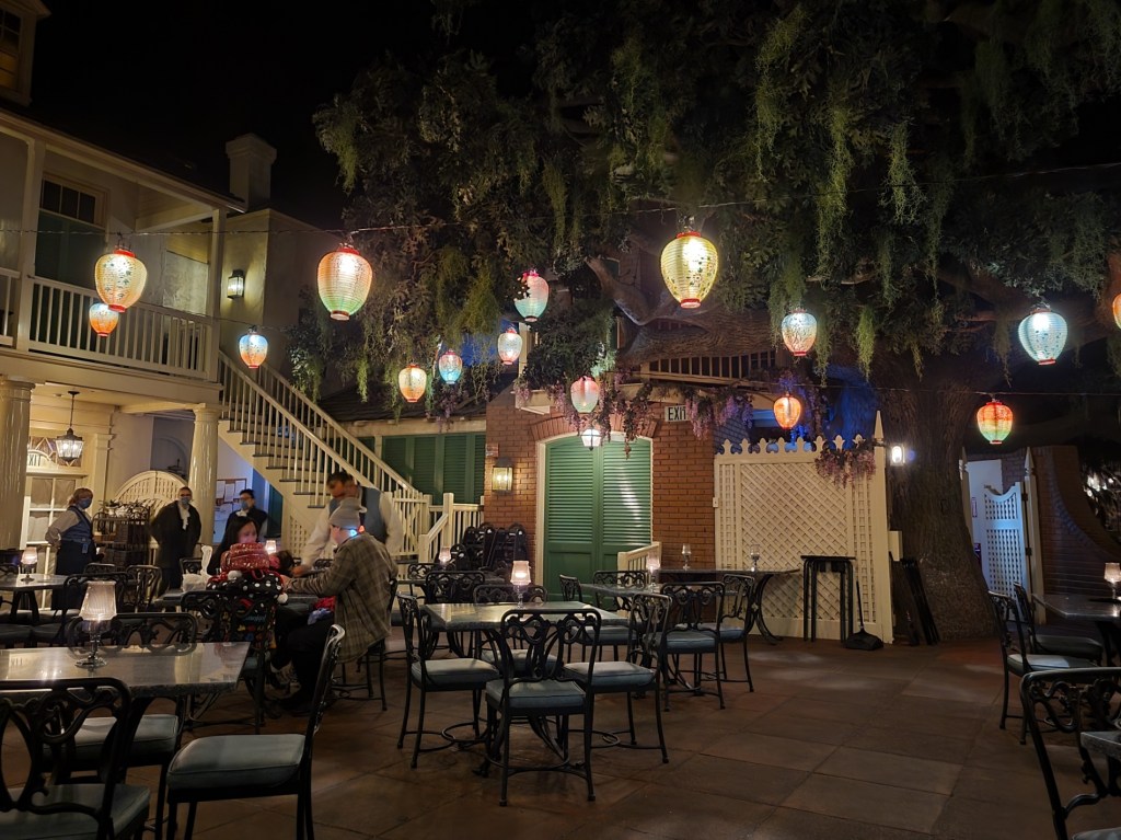 I then braved crossing the post fireworks crowd to get to Adventureland. I was Blue Bayou bound! Another agent, Jaime, had been lucky enough to get a last minute reservation for 6 at one of Disneyland Resorts most popular restaraunts. The other agents declined because it wasn’t until 9:20 pm. But there was NO WAY I was going to turn down the Blue Bayou. When I was young and we visited Disneyland, my family always ate at the Blue Bayou. It was a lovely childhood memory, and it’s such an amazing atmosphere. This restaraunt is set right in the middle of the Pirates of the Caribbean ride!