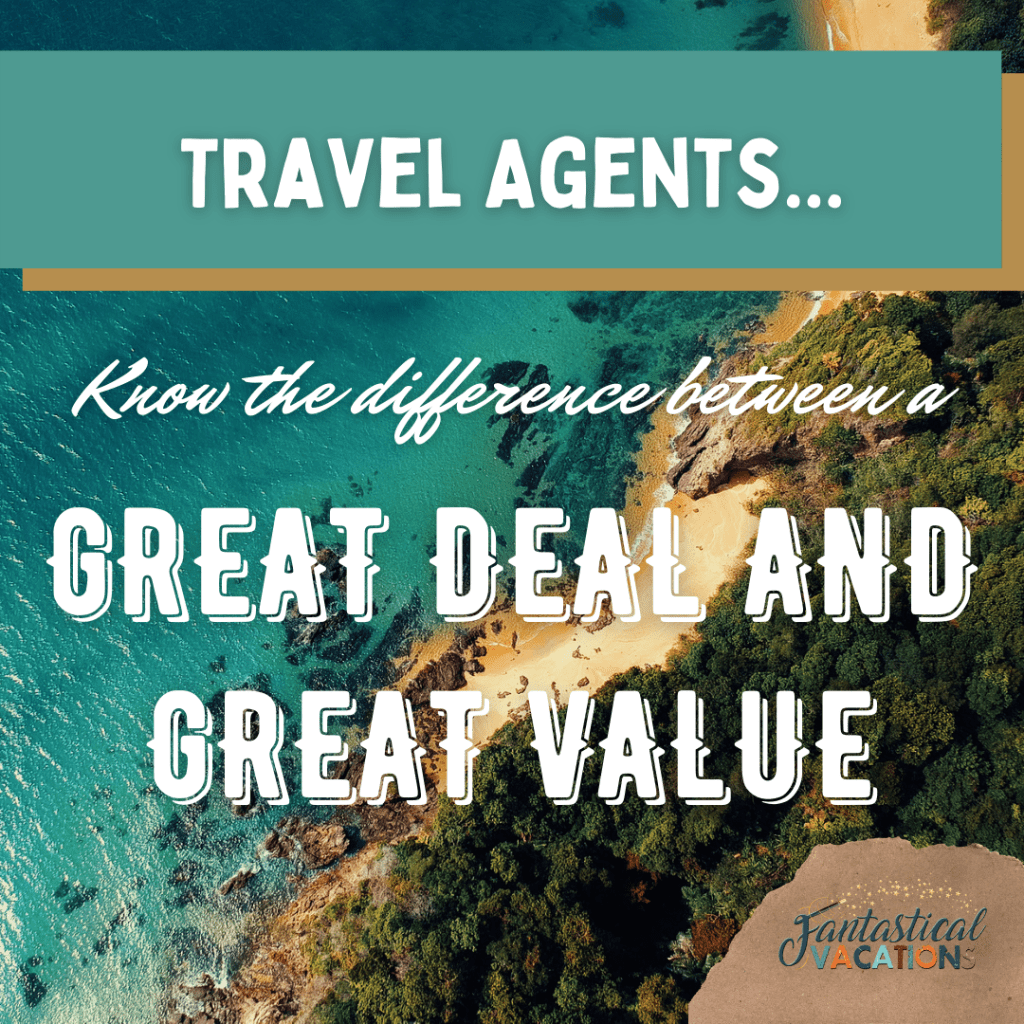 It’s understandable that you may feel limited by your vacation budget. That’s why I’m dedicated to help you receive the best possible value. When you compare the vacation packages that I can offer you with what’s available via an online or discount website, please know that you’re probably not comparing apples to apples. The hotel I’ve selected is in a locale I think you will like, based on what you’ve told me. The room I have reserved for you is guaranteed in its category, meaning when you check in, you won’t be given different accommodations, based on what the desk attendant’s chooses or hotel availability. Plus, if you’re looking at a website that brags that it has the lowest pricing available, you’ll likely be getting the lowest quality room available. You also will receive price monitoring from me, with complimentary adjustments if something comes along that your vacation package qualifies for.