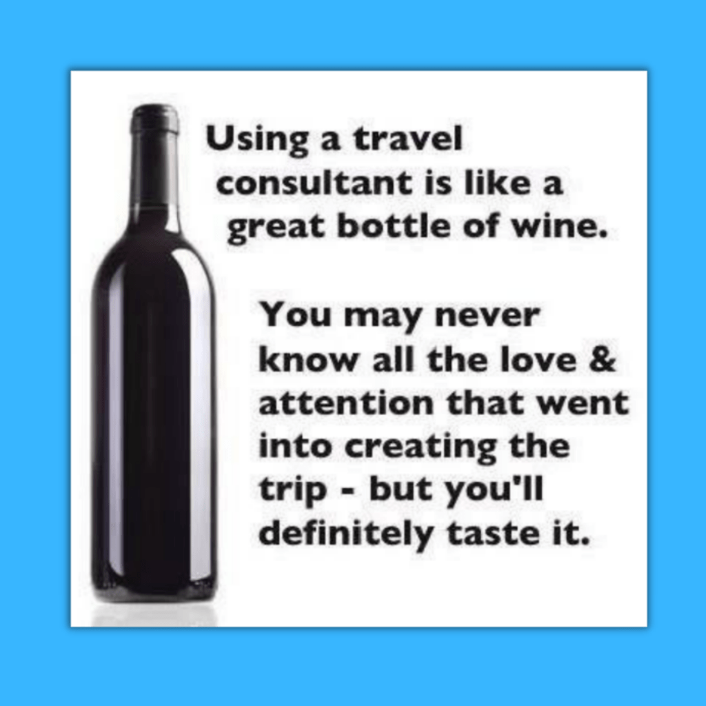 If none of this sounds appealing, using a travel agent is still free and you’re supporting a small business, which helps support my family! Not a corporation, that will keep the money and use it to buy more yachts, jets, and whatever else! If you want to support me by booking through me and keep control of all your plans yourself, we can make that happen as well!