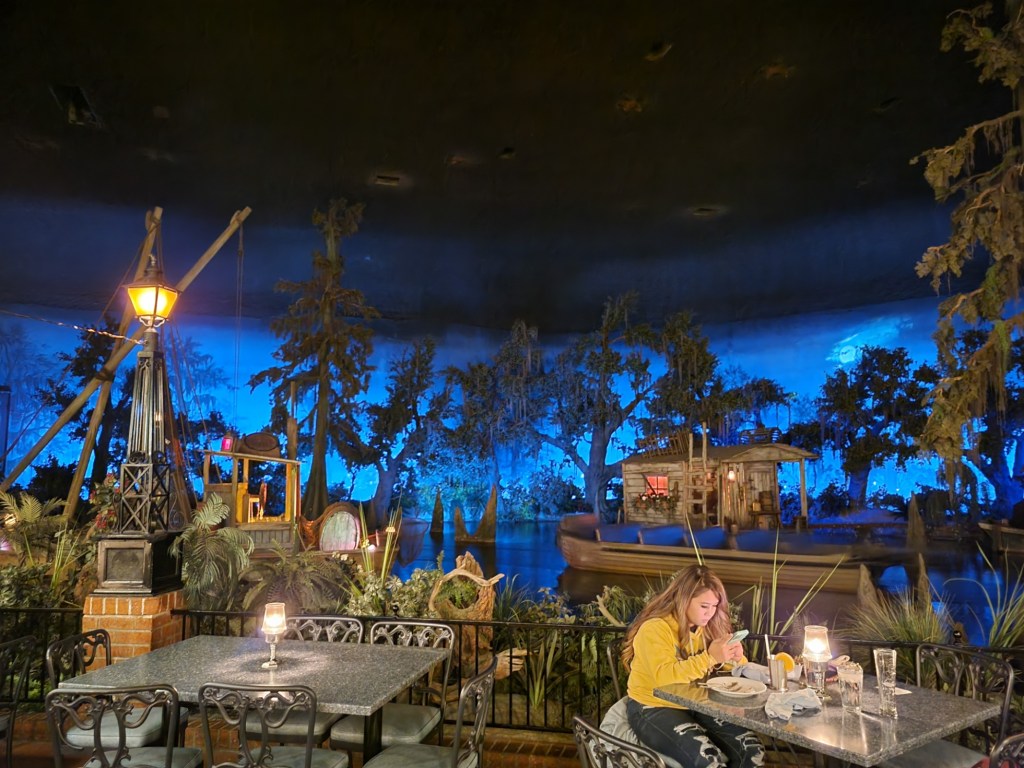 The Blue Bayou deserves it’s own section. It’s theming is top notch. You’ll find this restaurant in New Orleans Square. Once through the lobby, you’ll find yourself right in the bayou of the Pirates of the Caribbean. Although they usually have my favorite, the Monte Cristo, it wasn’t available on this trip. Sometimes this happens if they don’t have a fry cook that day. In spite of this, however, it’s still an amazing spot.