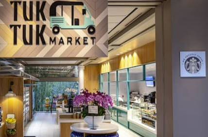 4 restaurants including Pier 8 Market, The Oasis Beach Bar, Starbucks, and Sunset Lounge