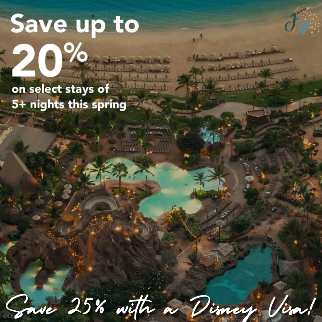 This includes saving up to 30% on rooms at Disney’s Animal Kingdom Lodge and family suites at Disney’s Art of Animation Resort, and saving up to 25% on rooms at Disney’s Coronado Springs Resort and other select Disney Resort hotels.