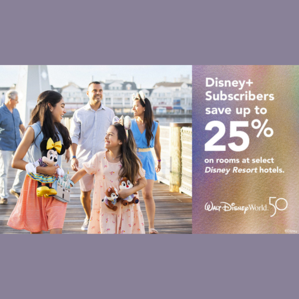 For the first time, Disney+ subscribers can save up to 25% on rooms at select Walt Disney World Resort hotels! Bookings are now available for visits between July 8 through September 30, 2022